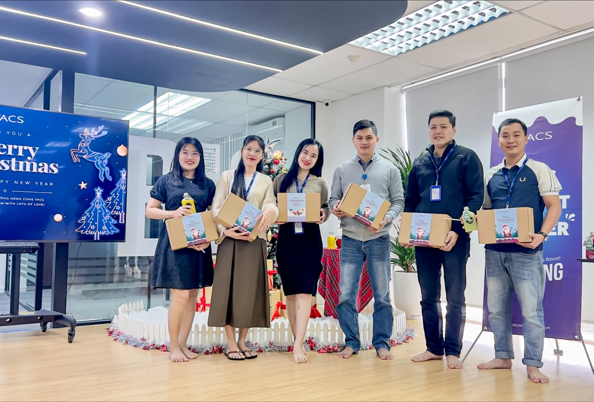 RING!RING!RING! Giáng sinh gõ cửa nhà VACS với vô vàn những điều thú vị. Từ đầu cầu văn phòng CTH, HCM đến chi nhánh Đà Nẵng, Huế về đến đầu cầu Hà Nội, nhà VACS đã có những phút giây ấm áp, đong đầy yêu thương bên nhau. Những món quà được ghi dấu đặc biệt cho mỗi thành viên, những nụ cười rạng rỡ và vô vàn những lời chúc giáng sinh ý nghĩa của các VACSers dành cho đồng nghiệp.