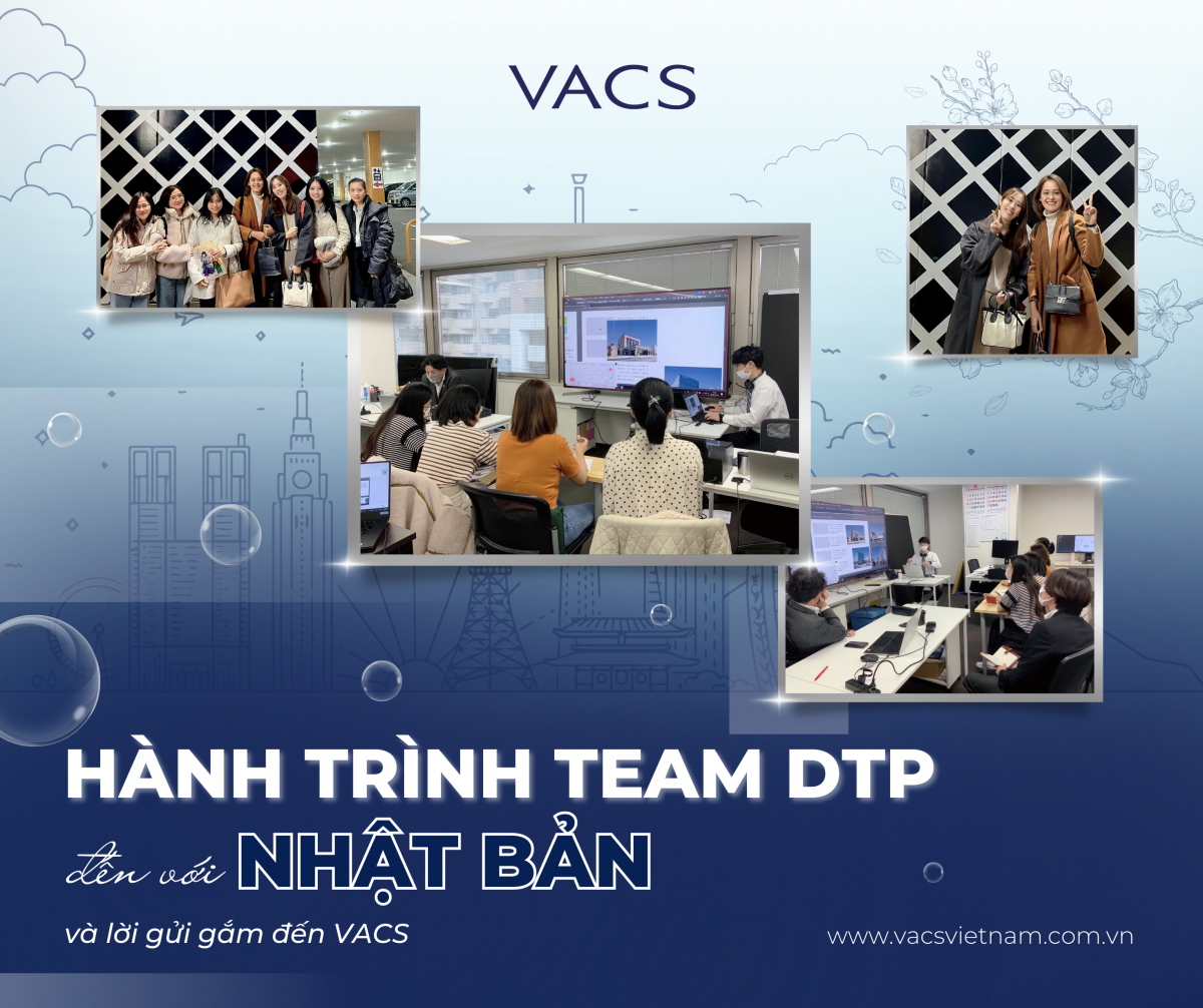 Chuyến công tác Nhật Bản của team DTP VACS Việt Nam là một hành trình đáng nhớ và ý nghĩa. Trong suốt 2-3 tháng, bốn thành viên Ngân Giang, Mỹ Nhung, Bình Minh và Uyên Thi đã được trải nghiệm nhiều điều mới mẻ và thú vị khi có cơ hội làm việc cùng các đồng nghiệp VACS Nhật Bản. Không chỉ học thêm được kiến thức chuyên môn và kỹ năng, các bạn còn được thưởng thức văn hóa, ẩm thực và phong cảnh đẹp của xứ sở hoa anh đào. Team DTP VACS Việt Nam đã biết tận dụng tốt để nâng cao, phát triển khả năng của bản thân sau chuyến đi này.