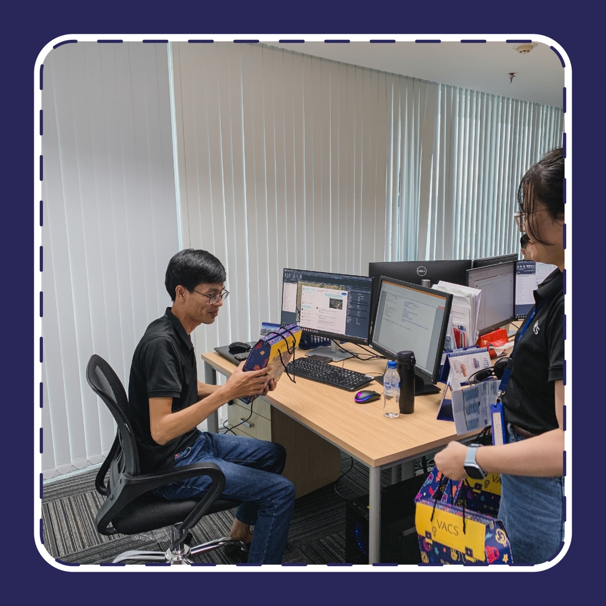 Vừa qua, không khí các văn phòng VACS ba miền trở nên tươi vui, nhộn nhịp khi những "cặp sách tuổi thơ" được trao tận tay cho các bậc phụ huynh, chứa đựng "hạt mầm tri thức"; đính kèm là bộ sticker siêu dễ thương mang thông điệp ý nghĩa về học tập và tình cảm gia đình. Bên cạnh đó, những lời chúc dành cho “xinh ngoan yêu” cũng được gửi gắm tinh tế qua từng hộp quà. Hy vọng, các con sẽ có nhiều trải nghiệm thú vị và học hỏi thêm những điều hay thông qua món quà này.
