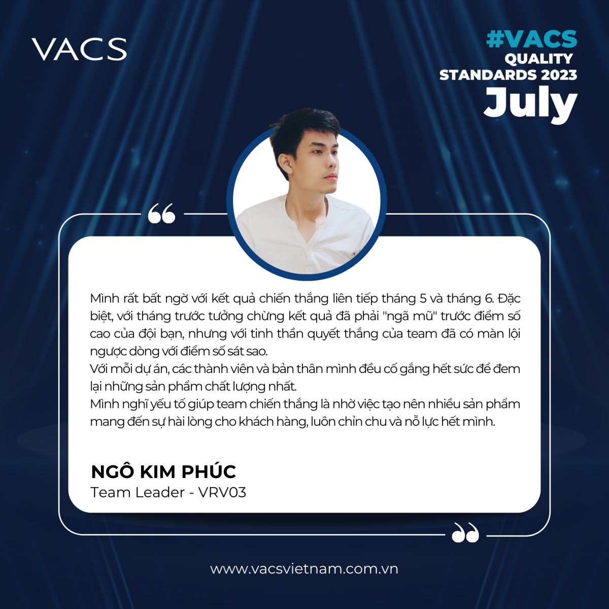 Mong rằng team sẽ tiếp tục phát huy những điểm mạnh, luôn duy trì tinh thần tốt và giữ vững phong độ để bảo vệ ngôi vị quán quân trên chặng đua sắp tới! Hãy luôn tin tưởng vào bản thân và đồng đội, vì các bạn là đội một nhóm tuyệt vời. VACS tự hào về các bạn.