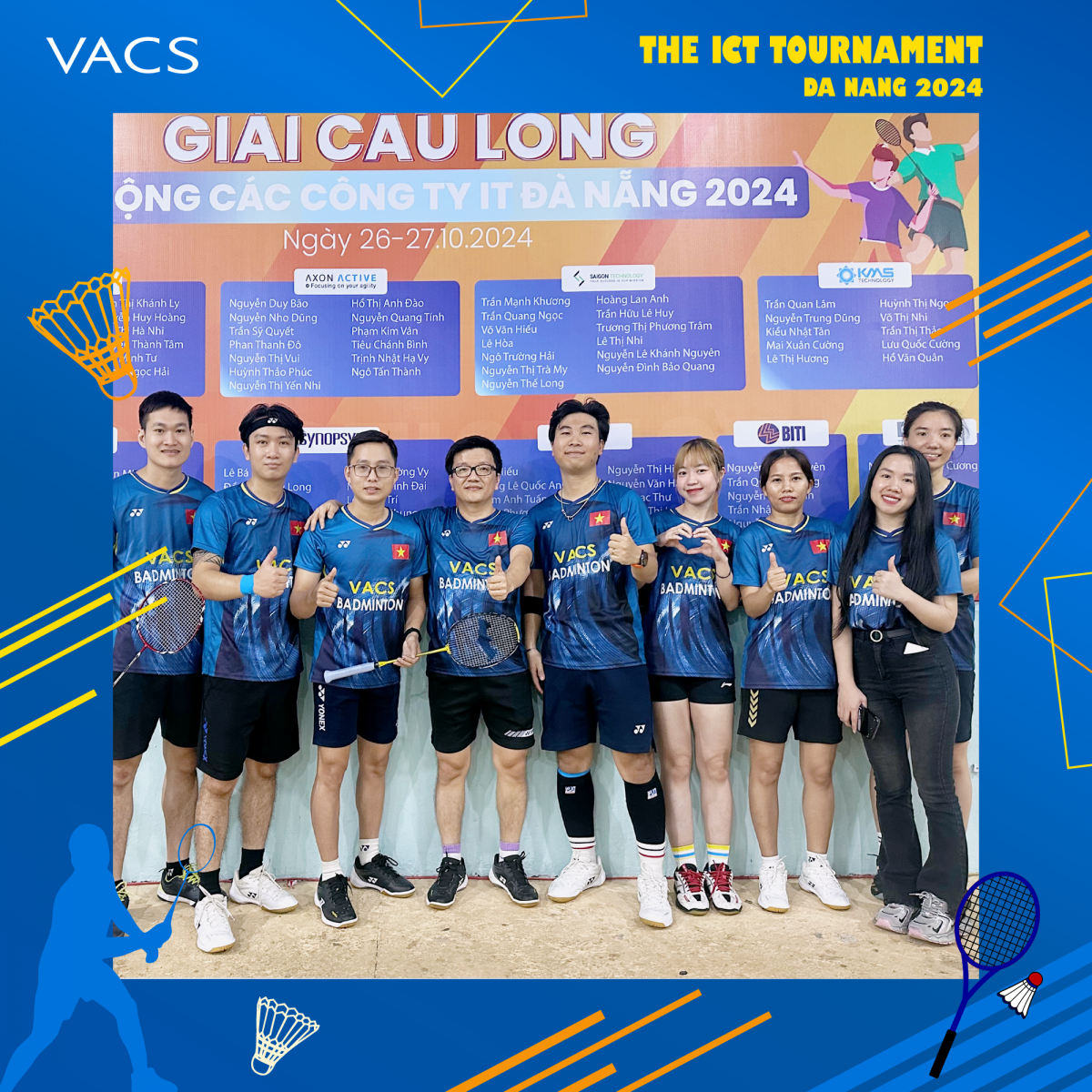 ️The ICT Badminton Tournament 2024 là giải đấu dành riêng cho cộng đồng CNTT thành phố Đà Nẵng, với sự góp mặt của 13 công ty công nghệ. 8 vận động viên của VACS đã thi đấu hết mình ở các nội dung đôi nam, đôi nam nữ và đôi nữ.