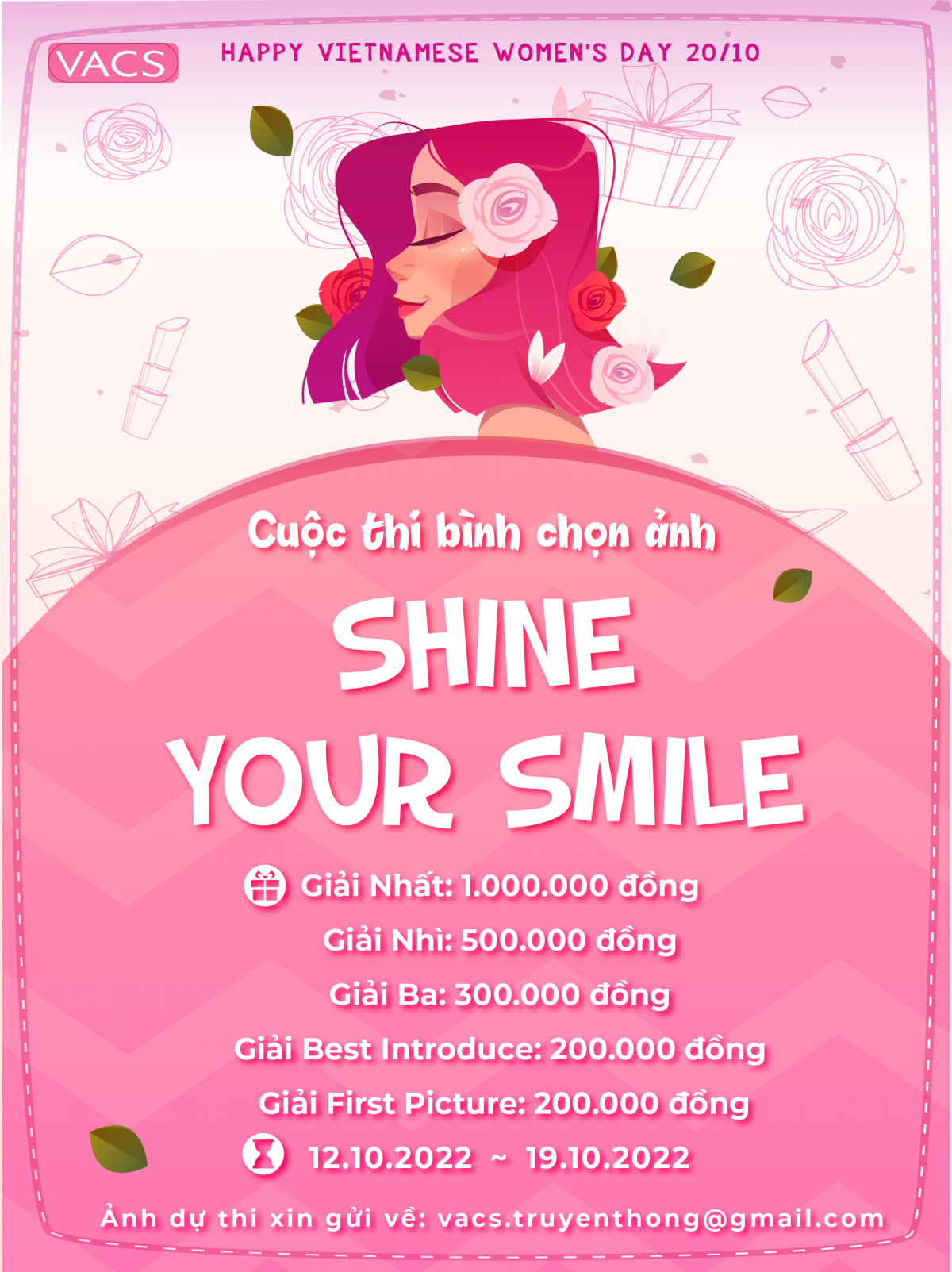Nhân Kỷ niệm Ngày Phụ nữ Việt Nam 20/10, VACS hân hoan tổ chức cuộc thi bình chọn ảnh online dành cho toàn thể chị em với chủ đề SHINE YOUR SMILE - TOẢ SÁNG NỤ CƯỜI VACS