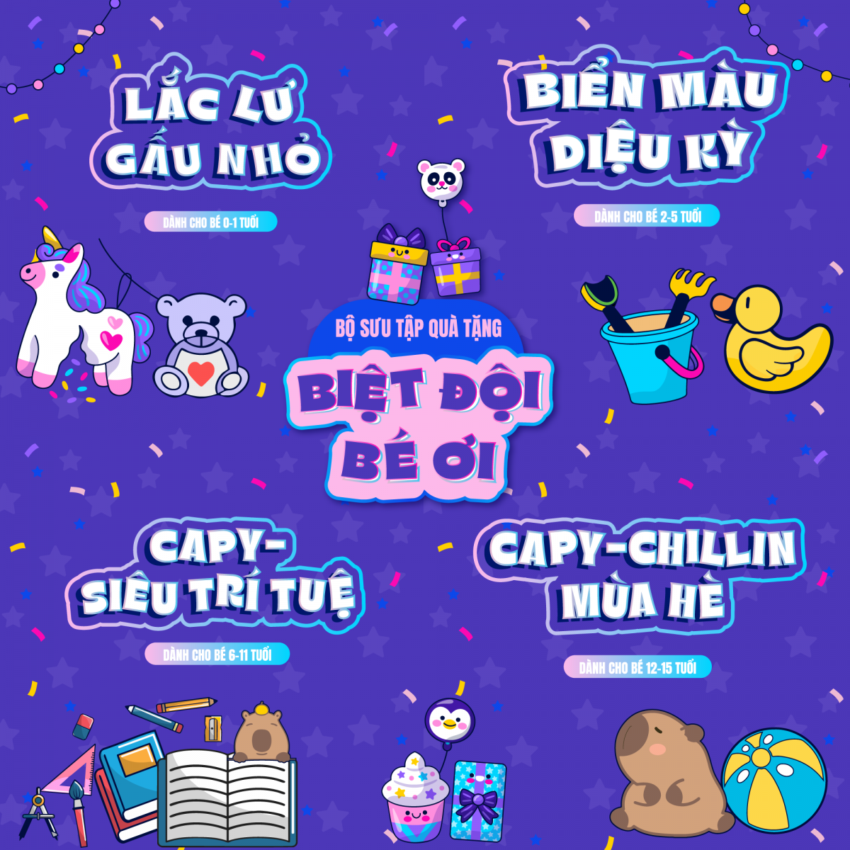 - 6–11 tuổi: Capy-siêu trí tuệ - "bạn" đồng hành giúp con thêm yêu thích học hành