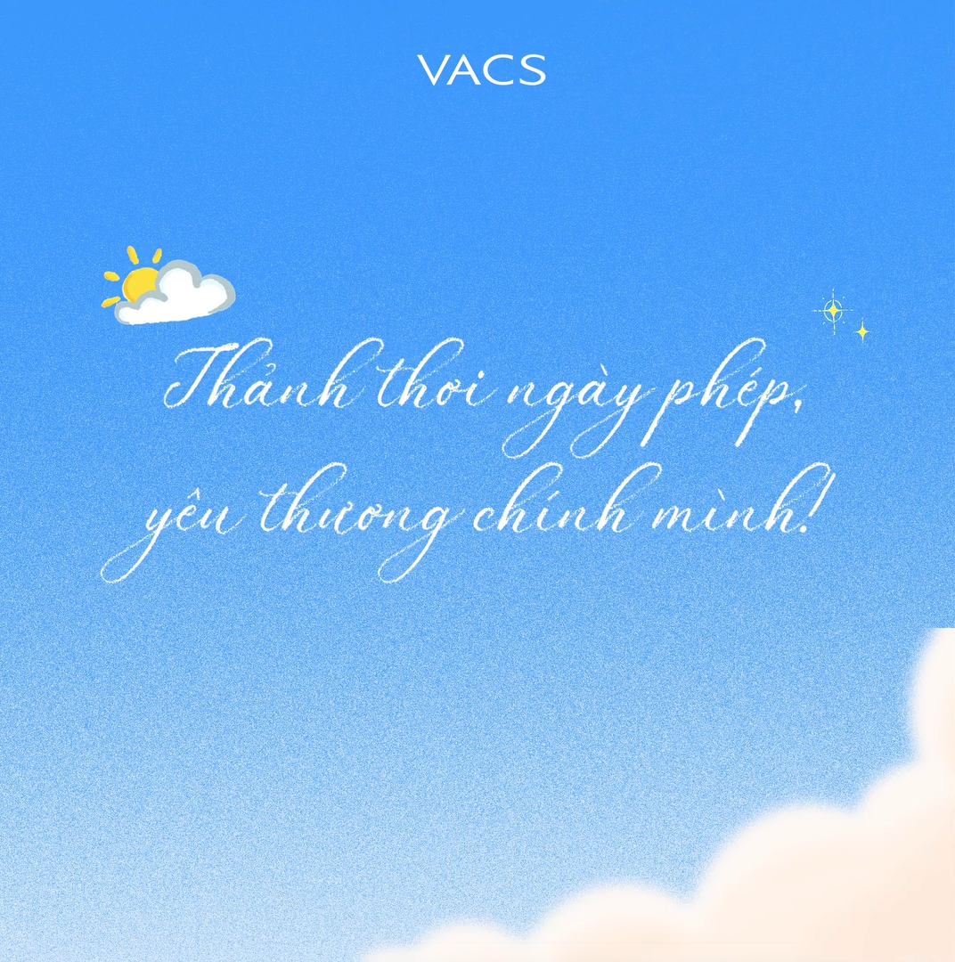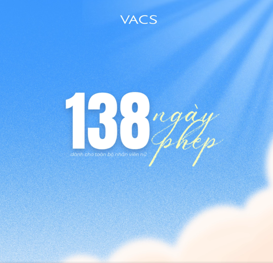 VACS hiểu rằng, những phút giây nghỉ ngơi quý giá chính là khoảng thời gian để chúng ta tái tạo năng lượng, tiếp tục bứt phá và tỏa sáng trong công việc. Với ý nghĩa đó, công ty đã gửi tặng mỗi thành viên nữ 01 ngày phép, như một lời cảm ơn sâu sắc, chân thành vì sự cống hiến của họ. Thay cho những đoá hoa tươi thắm, món quà này mang ý nghĩa thiết thực và được chị em vô cùng yêu thích.