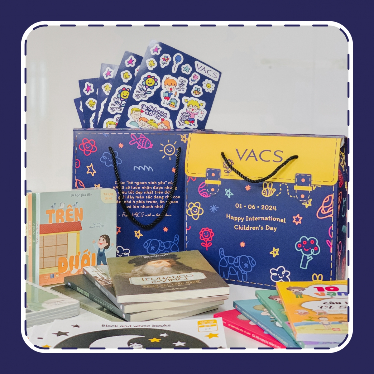 Vừa qua, không khí các văn phòng VACS ba miền trở nên tươi vui, nhộn nhịp khi những "cặp sách tuổi thơ" được trao tận tay cho các bậc phụ huynh, chứa đựng "hạt mầm tri thức"; đính kèm là bộ sticker siêu dễ thương mang thông điệp ý nghĩa về học tập và tình cảm gia đình. Bên cạnh đó, những lời chúc dành cho “xinh ngoan yêu” cũng được gửi gắm tinh tế qua từng hộp quà. Hy vọng, các con sẽ có nhiều trải nghiệm thú vị và học hỏi thêm những điều hay thông qua món quà này.