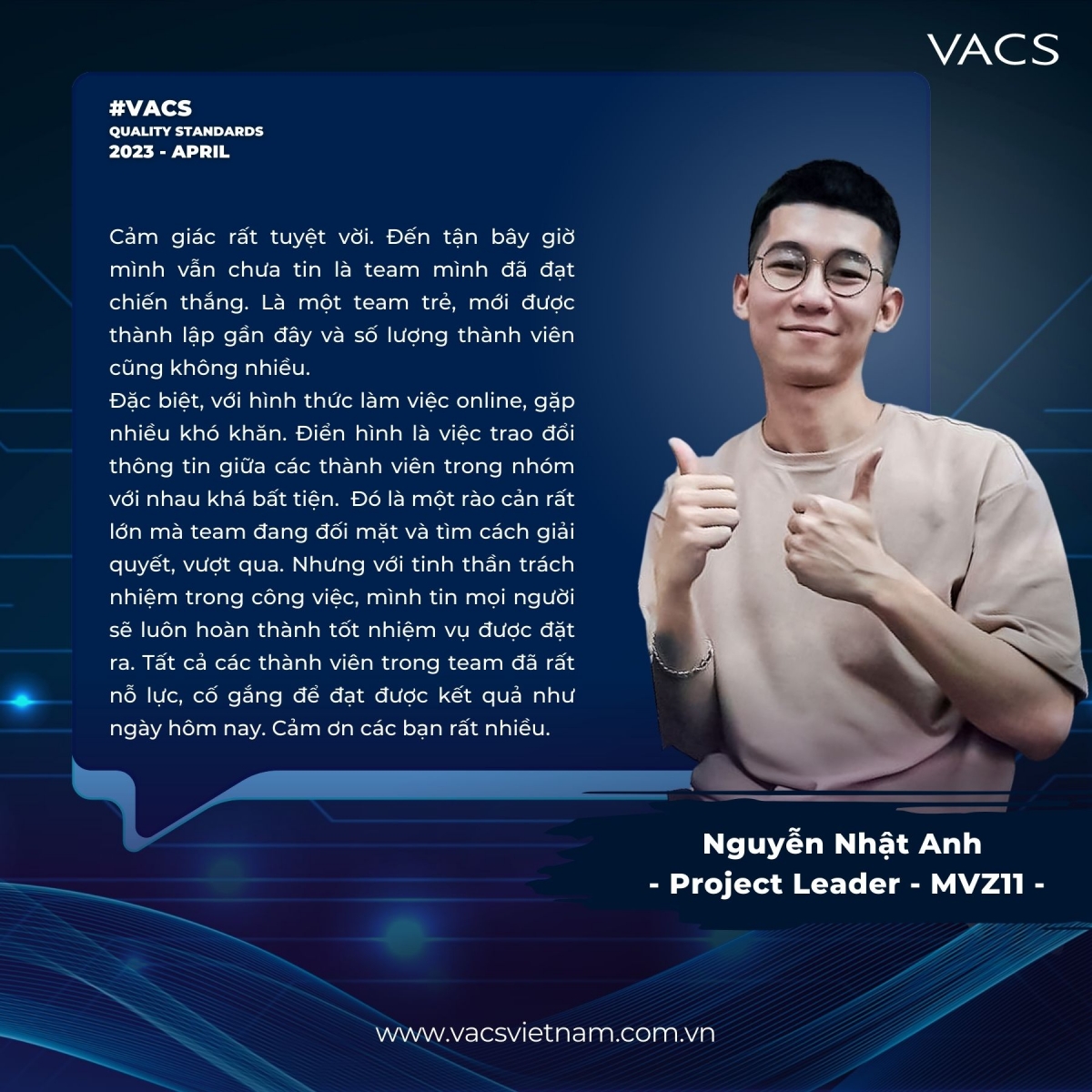 Team GL Thanh Tường - PL Nhật Anh - TL Viết Quang đã trở thành quán quân của sự kiện VACS Quality Standards Tháng 4.