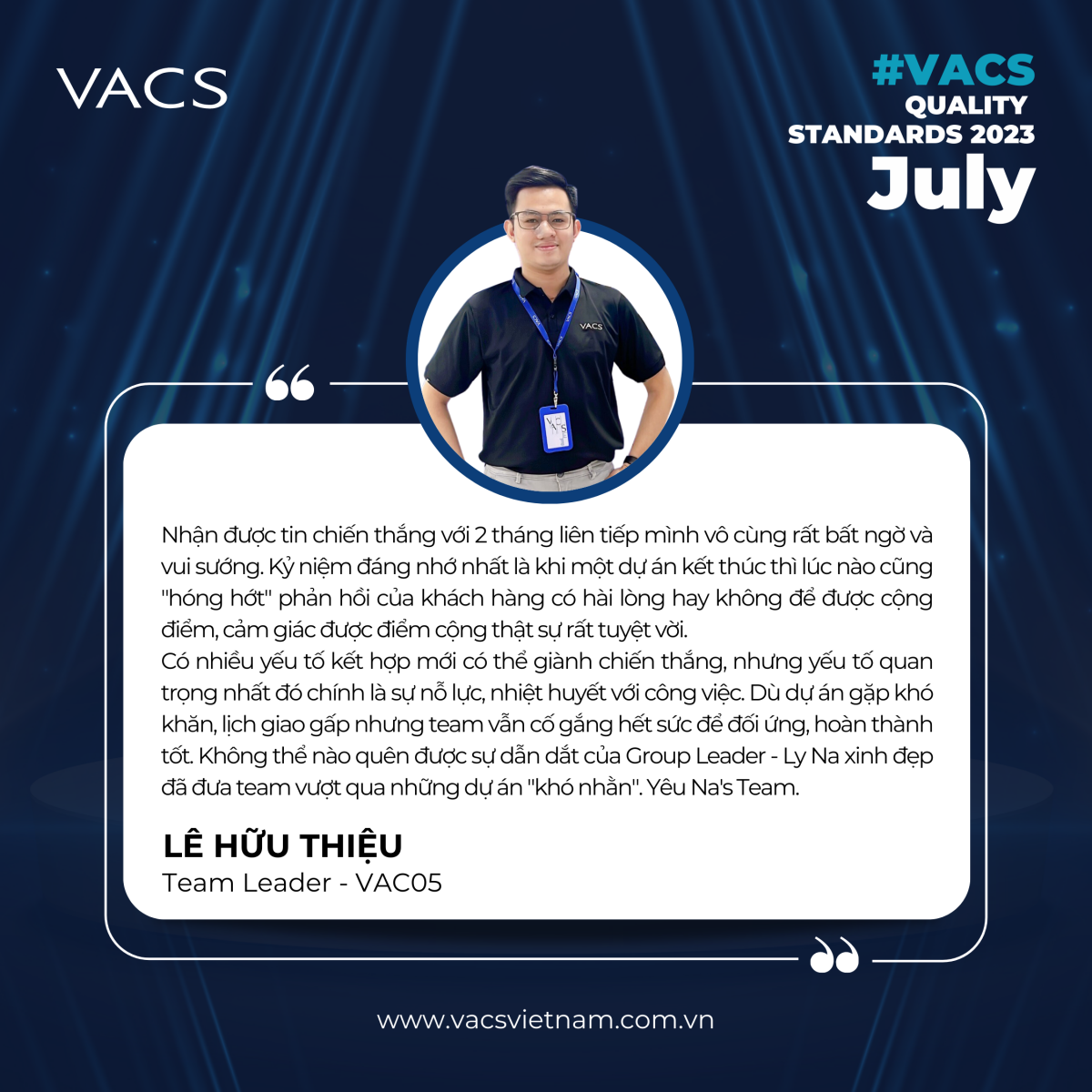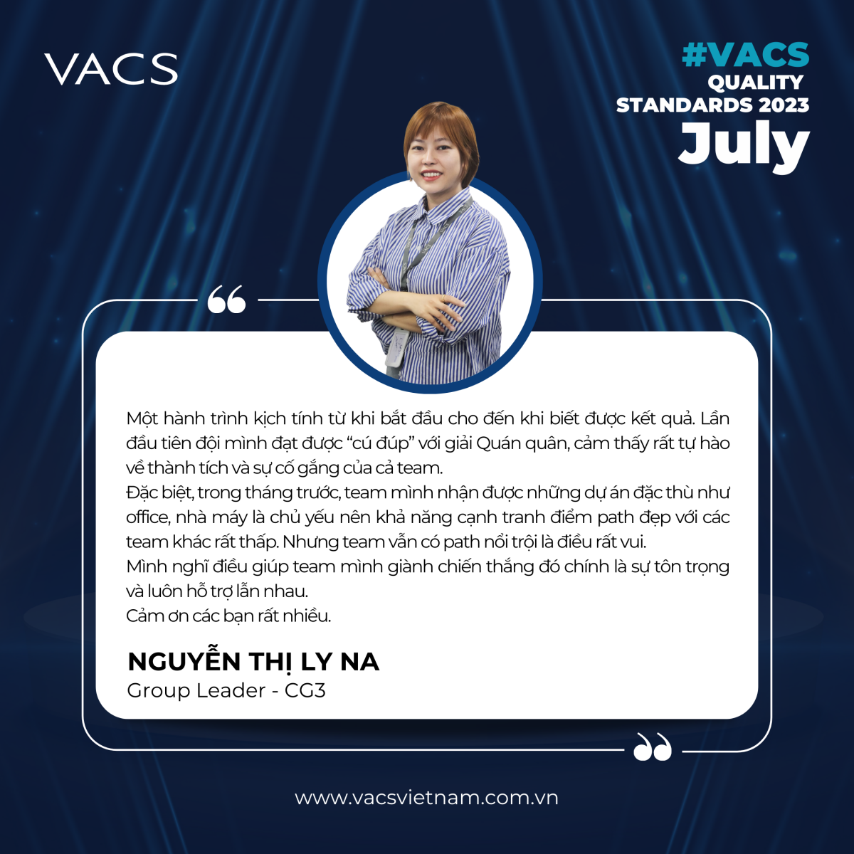 Với sự nhiệt huyết, cố gắng và đồng lòng của team GL Ly Na, toàn đội đã vượt qua mọi thử thách, tiếp tục giữ vững ngôi vị số một trong cuộc đua tháng này, mặc dù trong quá trình làm việc đã gặp không ít những khó khăn. Và cùng VACS lắng nghe những chia sẻ từ team chiến thắng: