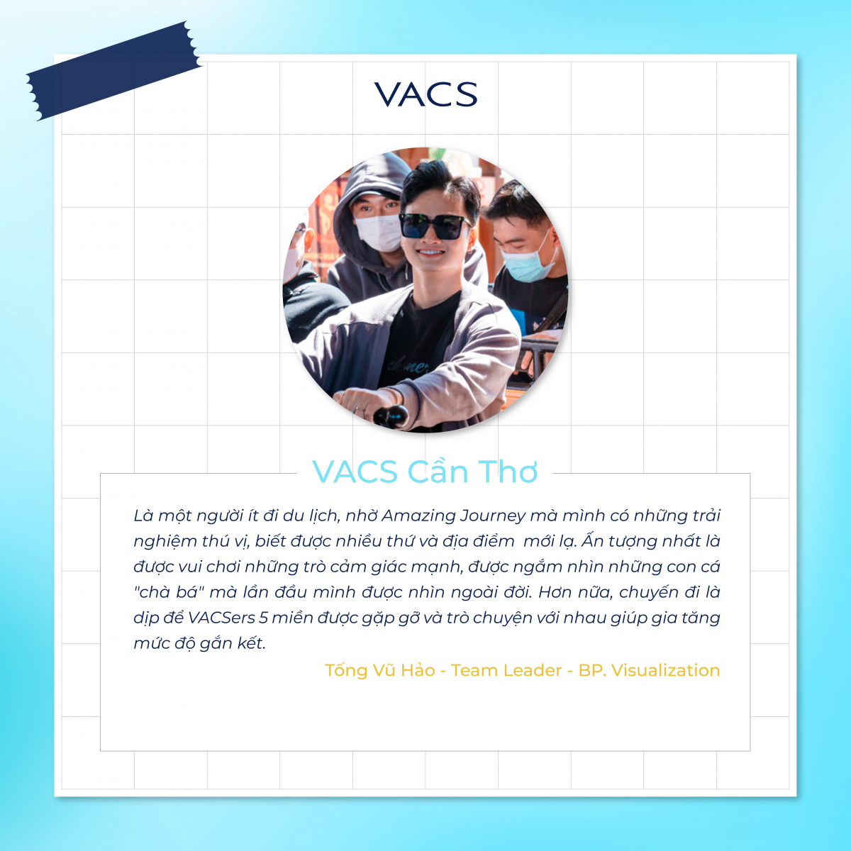 Trong những ngày cận kề đón Tết Giáp Thìn, ngoài bận rộn “chạy đua” với công việc, VACSers chúng mình cũng không quên dành thời gian nhìn lại những khoảnh khắc đáng nhớ trong hành trình Amazing Journey vừa qua. Amazing Journey - Một chuyến đi vui hết nấc, “quẩy tới bến” đúng nghĩa đã khép lại trong sự hào hứng xen lẫn nuối tiếc của các VACSers. Chuyến đi an toàn, mang lại nhiều khoảnh khắc đáng nhớ và ý nghĩa có lẽ là thành công lớn nhất mà BTC “thu về” sau chuyến đi này.